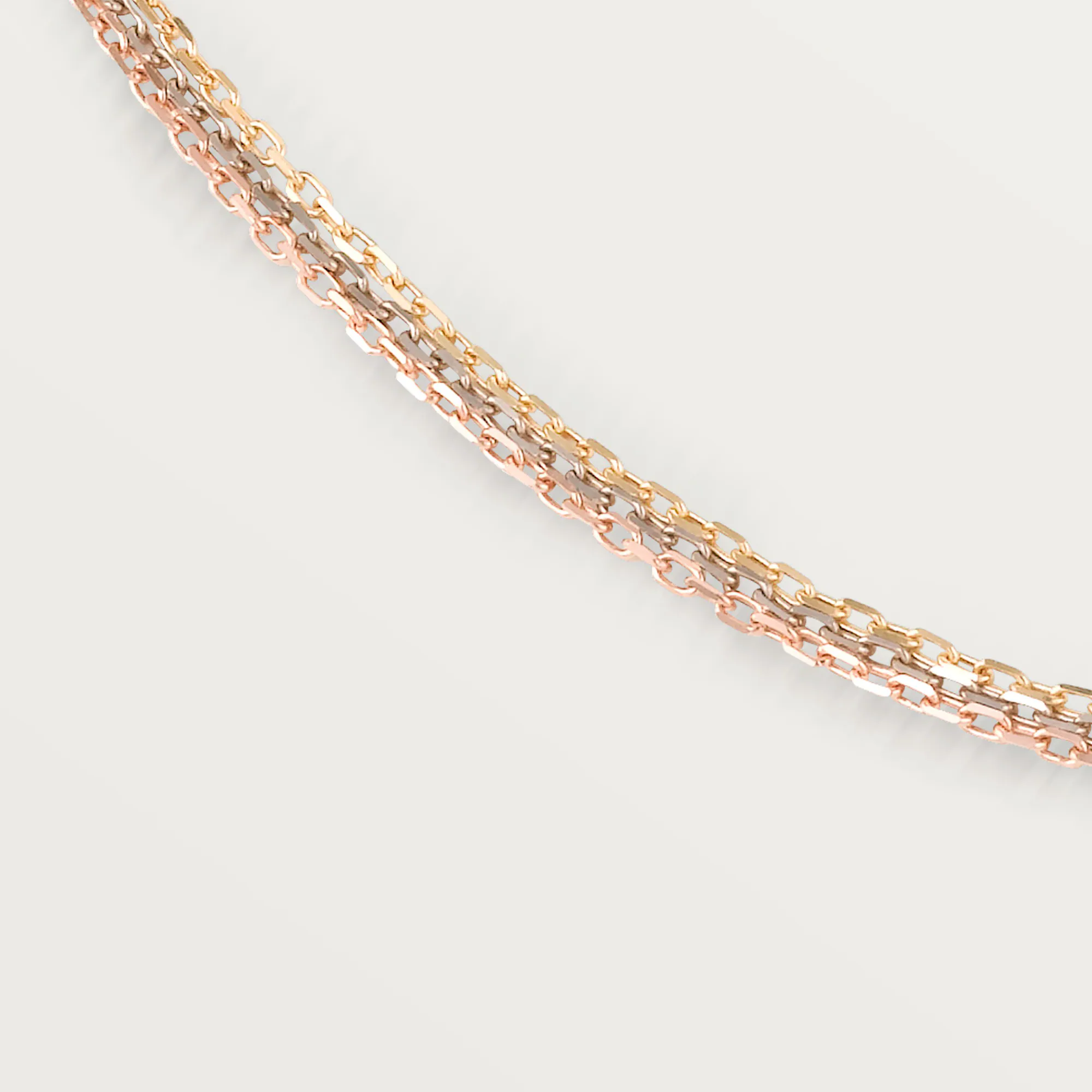 Chaînes necklace, 18K white gold (750/1000), 18K rose gold (750/1000), 18K yellow gold (750/1000). Adjustable chain length: 38-42-46 cm.