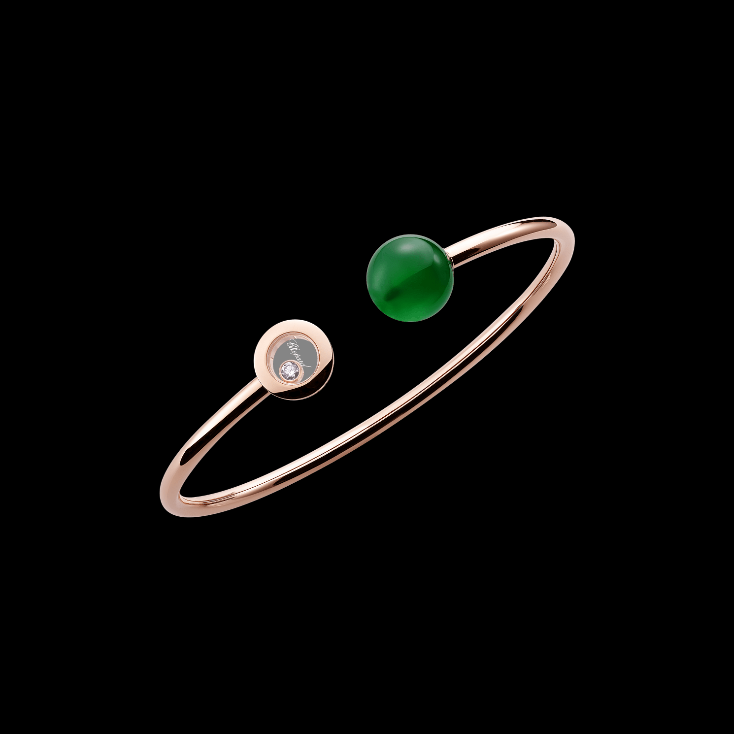 BANGLE, ETHICAL ROSE GOLD, DIAMOND, GREEN AGATE