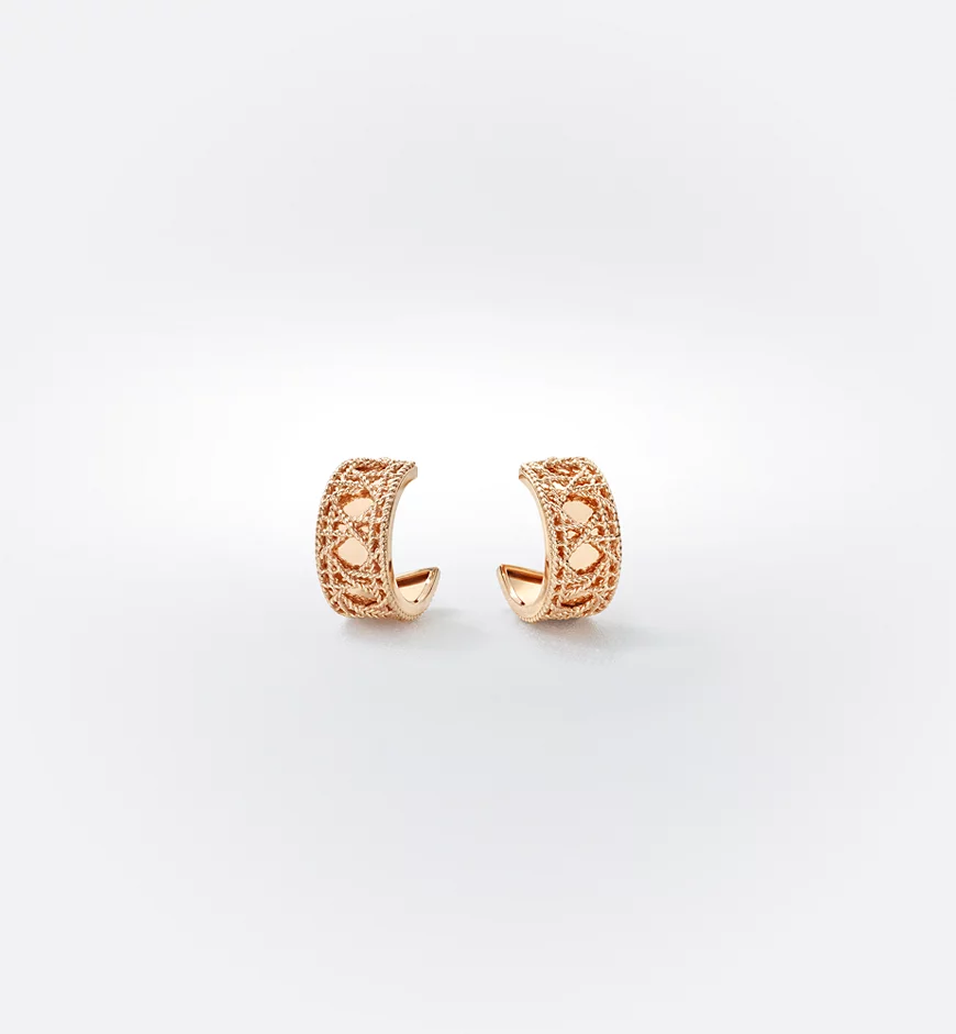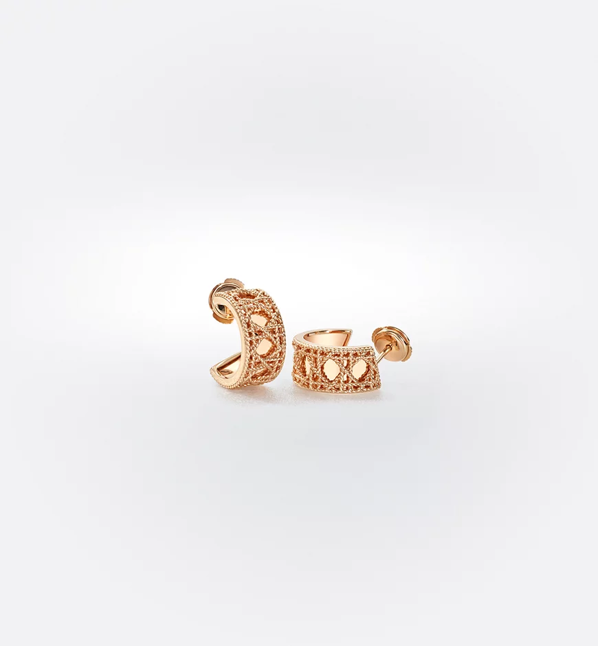 The My Dior collection by Victoire de Castellane is reinvented with a series of infinitely precious jewelry pieces. In an ode to the art of detail, a tangle of golden threads is woven together like meticulously interlaced sprigs of straw into a subtle mesh, revealing the iconic Cannage, accented by a strip of shiny gold. The craftsmanship is an homage to Dior’s refined style.