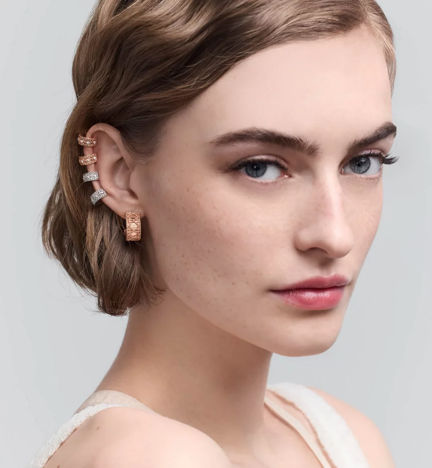 The monochrome designs of the My Dior line play with the concepts of contrast, brilliance and sleek graphics in a tribute to Dior’s timeless elegance. Featuring pink gold or white gold, the pieces are also occasionally adorned with diamonds.